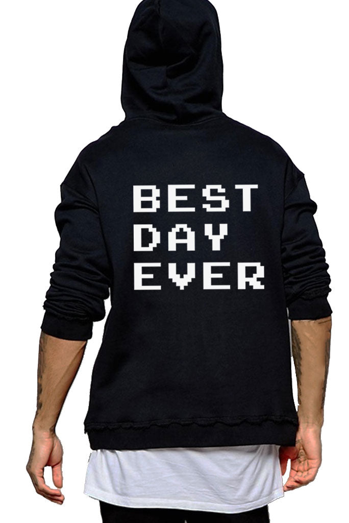 BEST DAY EVER unisex black hoodie w/ white print on the back (front is blank)